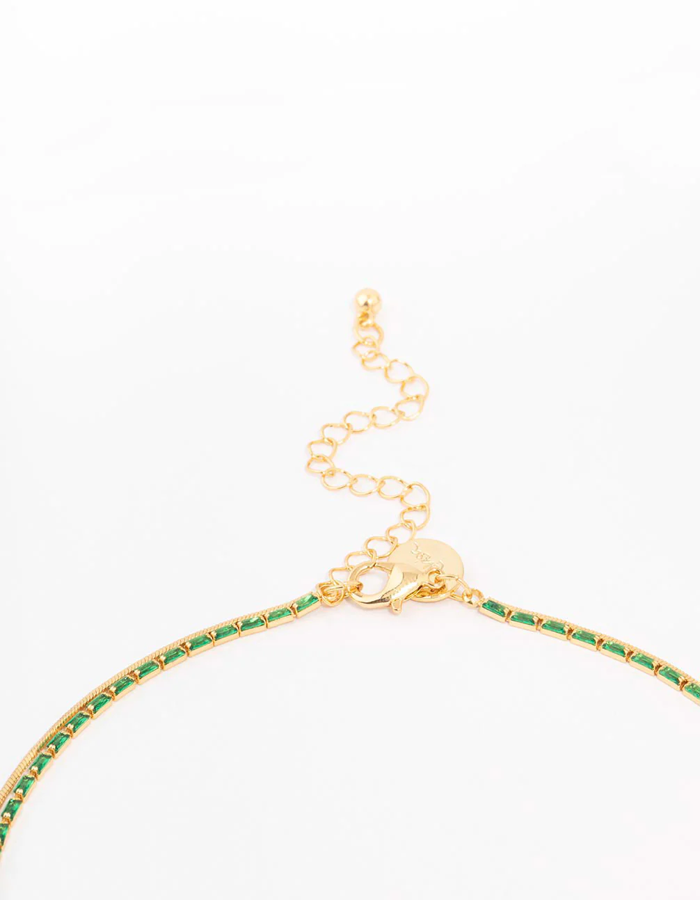 Layered necklaces elevate your style instantly. This stunning Gold Plated Necklace with emerald Cubic Zirconia crystals adds extra flair and energy.