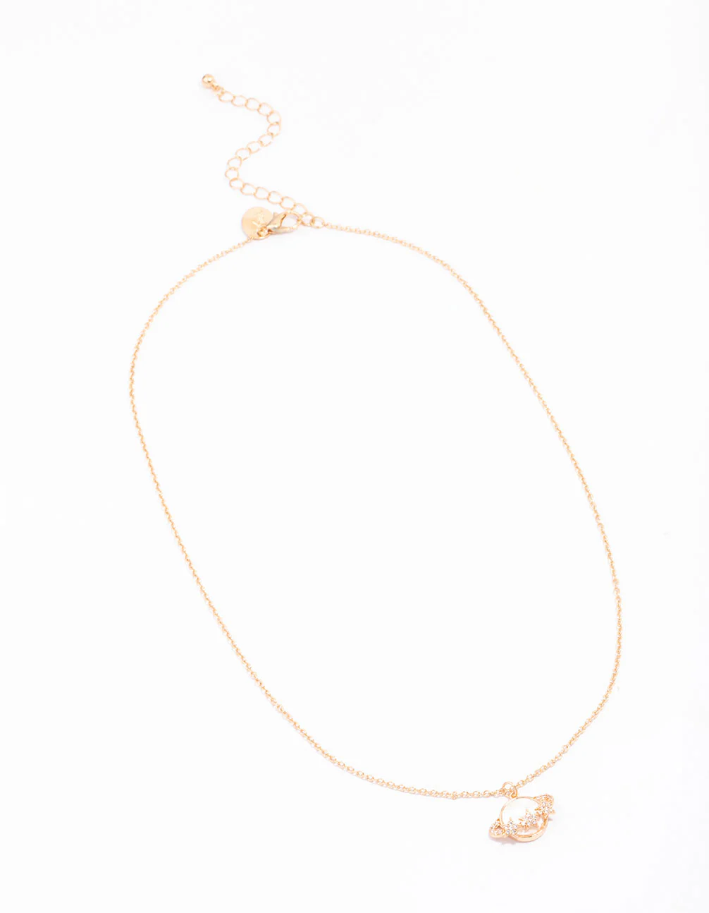Add interest to your outfit with this signature, gold pendant necklace. This necklace features a unique planet charm, perfect for adding personality to your look.