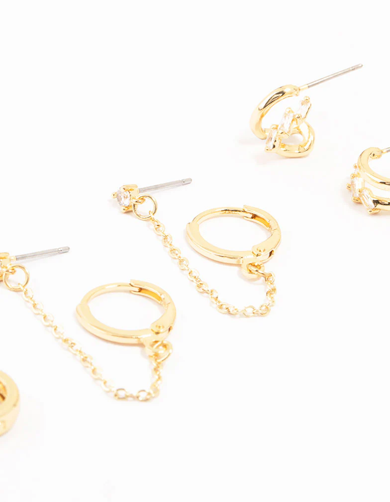 Create your own ear party with this set of five fabulous gold-plated earrings! From edgy chains to sleek studs and cool cut-out hoops, stack 'em up or rock 'em solo for a chill vibe.