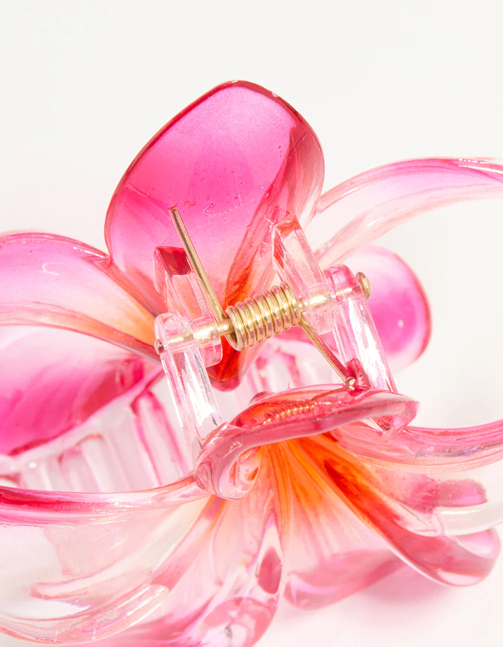 Keep your hair game strong with this Pink & Orange Frangipani Ombre Tropical Claw Clip. With its dreamy ombre hues and delicate frangipani-flower shape, this claw clip is perfect for quick, secure hairstyles that are effortlessly stylish. Ideal for sunny days, whether you're off to a picnic, beach outing, or brunch with friends, this tropical hair clip will instantly elevate your outfit. Pair it with flowy summer dresses, casual tees, or even your favourite swimwear for a carefree, playful vibe. Lightweight and easy to use, it's your go-to for half-up hairstyles, chic buns, or taming loose locks while staying fashionably cool.